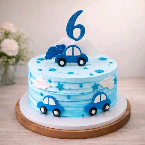 Premium Blue Car Theme Kids Birthday Cake