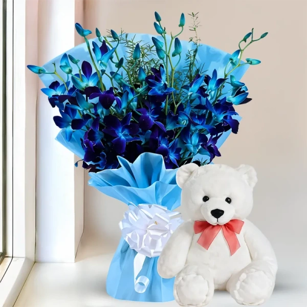 At My Gifts Tree, We believe every celebration deserves something truly special. Our Blue Orchid With Teddy is thoughtfully crafted to add sweetness, joy, and memorable moments to your special occasions.