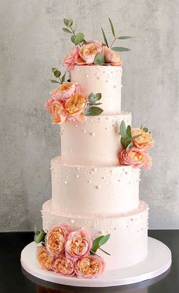 Grand 4-Tier Pearl & Rose Cascade Wedding Cake
