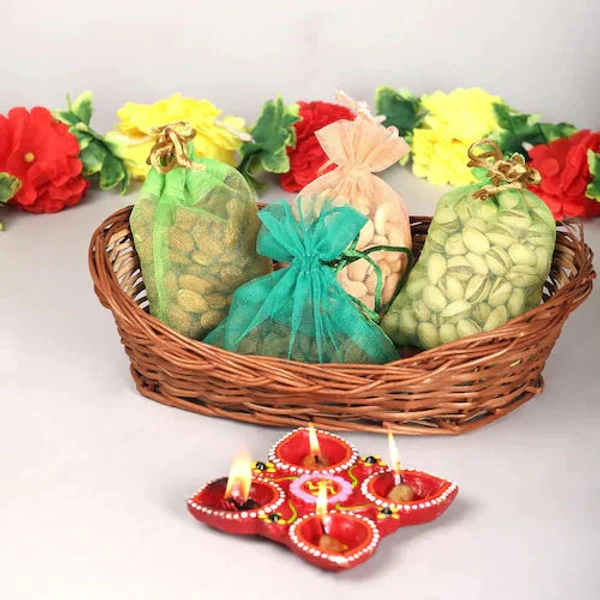 Dry fruits with diyas