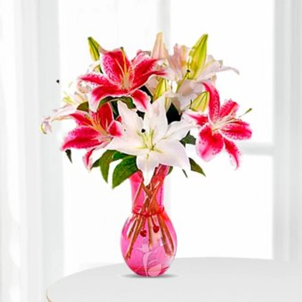 Let love and understanding bloom again with this calming bouquet of 6 Asiatic pink lilies, symbolizing renewal and peace. Elegantly wrapped in rustic brown jute paper, it's a thoughtful gift to reconnect, heal, or simply express admiration with timeless charm. Product Contains: 6 Asiatic Pink Lilies Jute Paper Wrapping Perfect For: Birthday Anniversary Valentine�s Day Women�s Day Mother�s Day Wife/Girlfriend Gifting