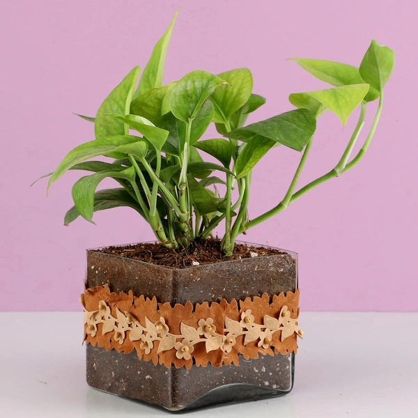 Gold king money plant in squre glass pot wi....