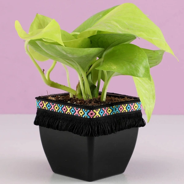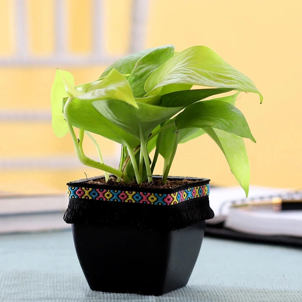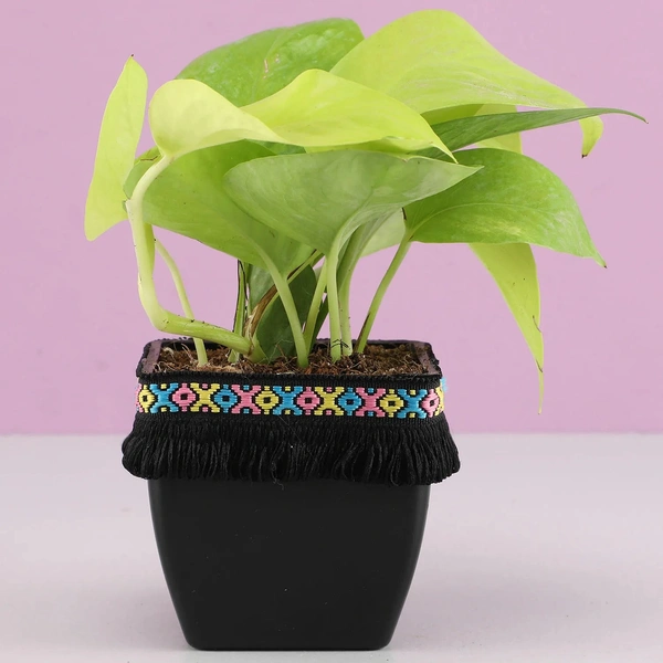 Neon money plant in black square pot with B....