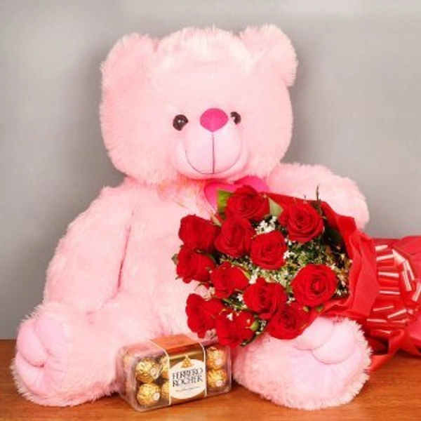 Pink Teddy With Red Roses