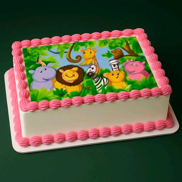 Premium Pink Border Jungle Image Cake